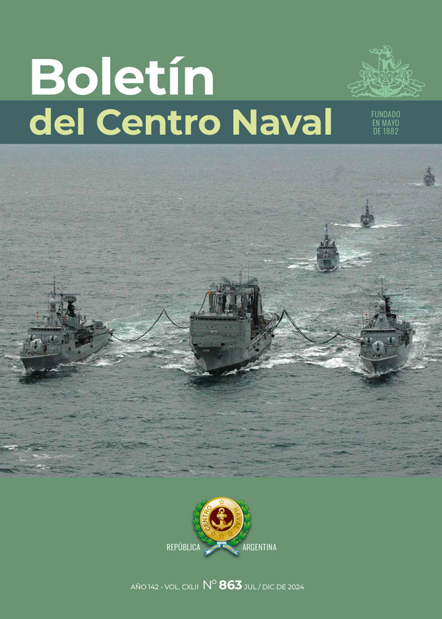 Los autores de los artículos publicados en el Boletín del Centro Naval son indefectiblemente responsables del contenido de los mismos y no reflejan obligatoriamente la opinión favorable o desfavorable del Centro Naval, que no comparte necesariamente los criterios vertidos, quedando su interpretación a cargo de la apreciación de los lectores. Asimismo, el Centro Naval no se hace responsable por la aplicación de los contenidos de los artículos publicados.